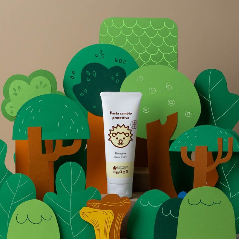 Una crema lenitiva-protettiva per il cambio del pannolino. Con ossido di zinco, estratto lenitivo di avena bio toscana, olio extravergine di oliva “Toscano IGP” bio, è ideale per le pelli arrossate sulle quali crea un naturale effetto barriera.